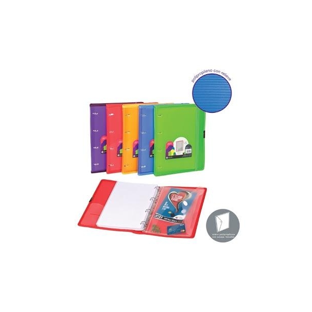 CARCHIVO CARPETA 4 ANILLAS 20MM CARPEBLOCK DUNE PP 120 HOJAS CON GOMA A4 SURTIDOS -EXPOSITOR 10U-