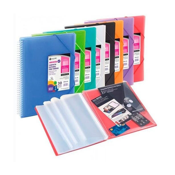 CARCHIVO CARPETA ARCHIVEX-STAR ESPIRAL PP EXTRA 80 FUNDAS A4 C/SOBRE CIERRE C/GOMAS NEGRO