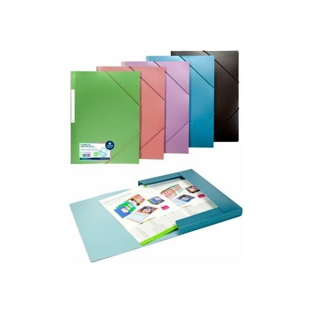 CARCHIVO CARPETA METAL TRES SOLAPAS GOMAS A4 POLIPROPILENO VERDE METALIZADO