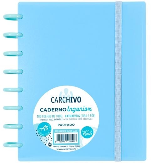 CARCHIVO CUADERNO INGENIOX ESPIRAL A5 100H C/SEPARADORES EXTRAÍBLES CUADRÍCULA 5X5 TAPAS PP SEMI-RÍGIDO CIERRE C/GOMA AZUL PASTEL
