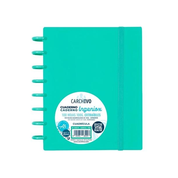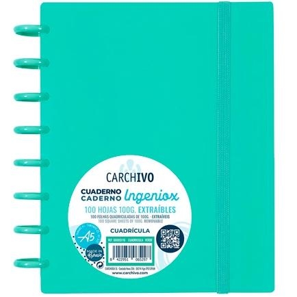 CARCHIVO CUADERNO INGENIOX PASTE ESPIRAL A5 100H C/SEPARADORES EXTRAÍBLES CUADRÍCULA 5X5 TAPAS PP SEMI-RÍGIDO CIERRE C/GOMA VERDE PASTEL