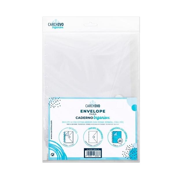 CARCHIVO SOBRE INGENIOX A4 EXTRAÍBLE CIERRE C/VELCRO POLIPROPILENO TRANSPARENTE