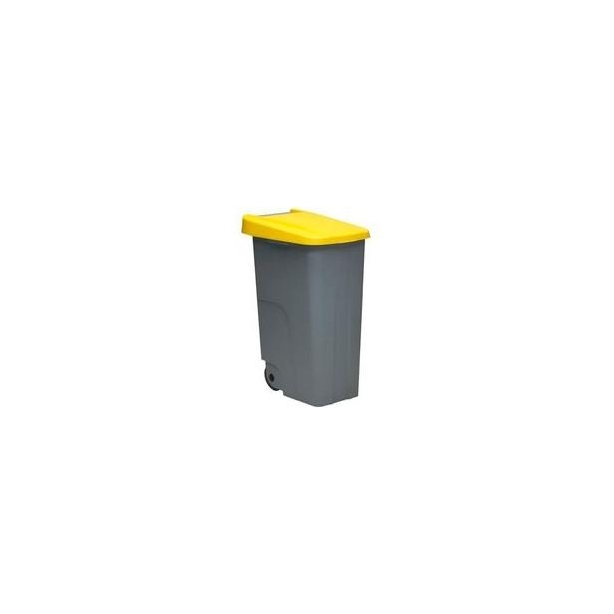 DENOX CONTENEDOR DE RECICLAJE C/RUEDAS Y ASA 110L GRIS C/TAPA AMARILLO