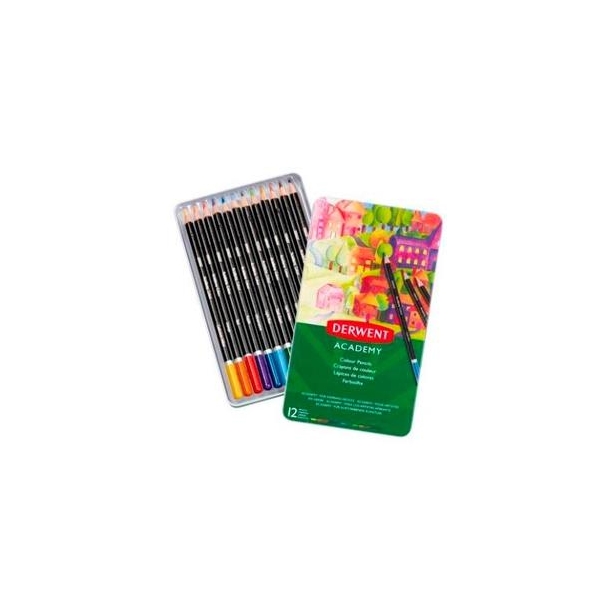 DERWENT LÁPICES DE COLORES SURTIDOS EN CAJA METÁLICA DE 12UD