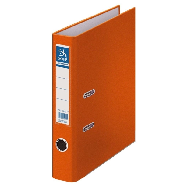 DOHE ARCHIVADOR CARTÓN RIGIDO FORRADO PP PALANCA FOLIO LOMO ESTRECHO RADO NARANJA