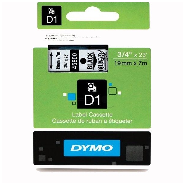 DYMO CINTA DE TRANSFERENCIA TÉRMICA D1 45800. ETIQUETAS ESTÁNDAR NEGRO SOBRE TRANSPARENTE DE 19MMX7M. POLIESTER AUTOADHESIVA. ROTULADORA LABELMANAGER