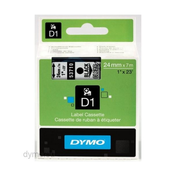 DYMO CINTA DE TRANSFERENCIA TERMICA D1 53710. ETIQUETAS ESTÁNDAR NEGRO SOBRE TRANSPARENTE DE 24MMX7M. POLIESTER AUTOADHESIVA. ROTULADORA LABELMANAGER
