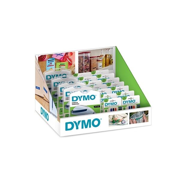 DYMO DISPLAY OMEGA ( 5 MAQUINAS OMEGA + 8 BLISTER DE 3 COLORES ROJO, NEGRO Y AZUL + 8 NEGRO)