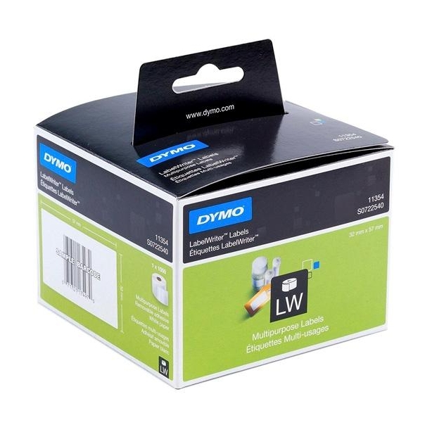 DYMO ETIQUETAS DE TRANSFERENCIA TERMICA LABEL WRITER MULTIUSOS 11354, NEGRO SOBRE BLANCO DE 32X57MM (A X L). ROLLO DE 1.000 UD.