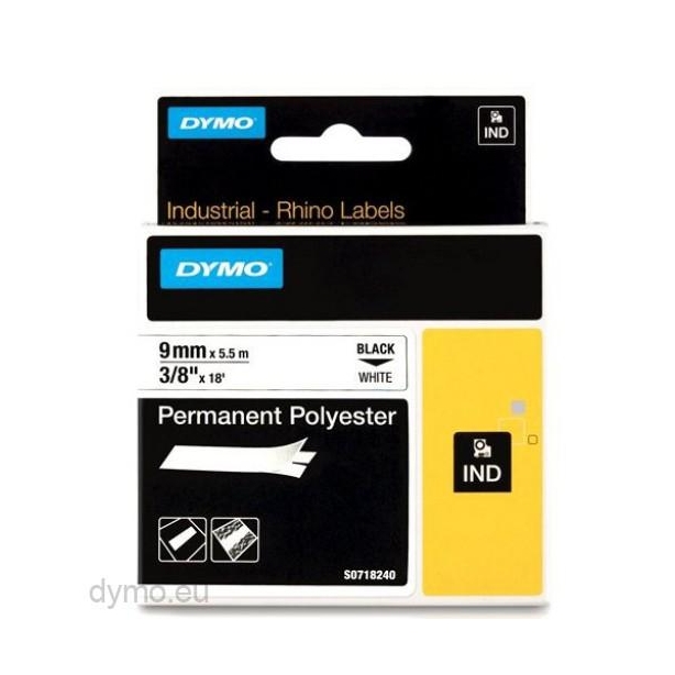 DYMO RHINO CINTA ID1-9, NEGRO SOBRE BLANCO, 9MMX5´5M, POLIÉSTER (S0718240)