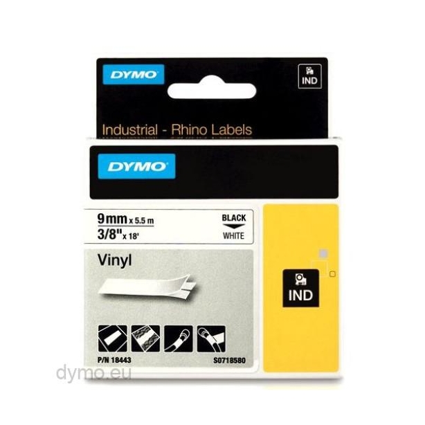 DYMO RHINO CINTA ID1-9, NEGRO SOBRE BLANCO, 9MMX5´5M, VINILO (S0718580)