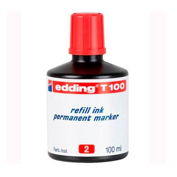EDDING FRASCO DE TINTA T100 PARA ROTULADOR PERMANENTE 100ML ROJO