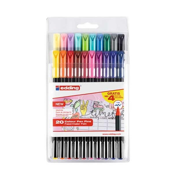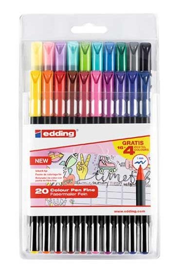 EDDING ROTULADOR PUNTA DE FIBRA 1200 ESTUCHE DE 16 COLORES ESTÁNDAR + 4 PASTEL