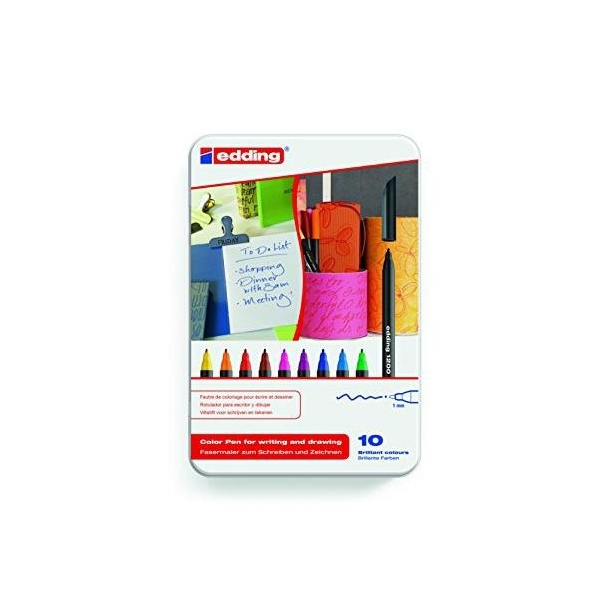 EDDING ROTULADORES PUNTA DE FIBRA 1200 ESTUCHE METÁLICO DE 10 C/SURTIDOS
