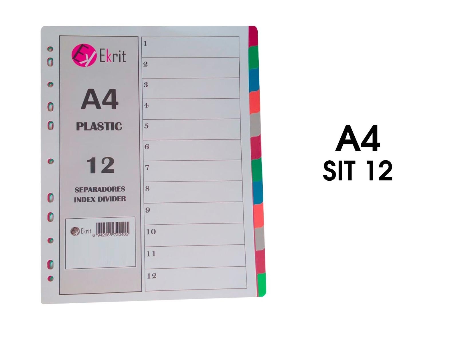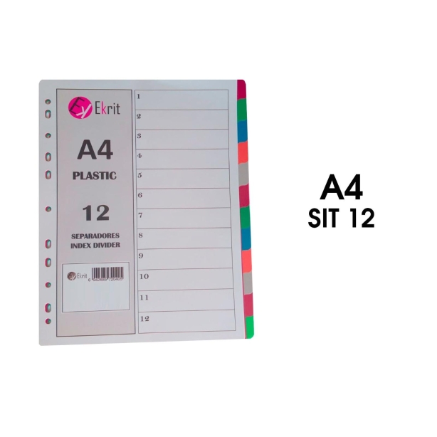 EKRIT SEPARADORES PP A4 11 TALADROS 12 COLORES