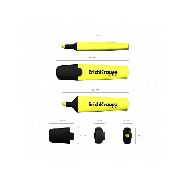 Un resaltador para marcar texto en todos los tipos de papel, incluidos los de fax y copias. La parte ancha de la punta (5,2 mm) es conveniente para resaltar texto y la parte delgada (0,6 mm) es para subrayar. El color del cuerpo coincide con el color de la tinta. La tinta fluorescente a base de agua se seca rápidamente después de la emisión y no deja marcas en el reverso del papel gracias al dibujo fino y uniforme. El modelo V-12 tiene la forma patentada reconocible y se convirtió en el más vendido entre los resaltadores ErichKrause® en más de cincuenta países de todo el mundo. La vida útil es de 5 años. La longitud máxima de escritura es de 660 м.
