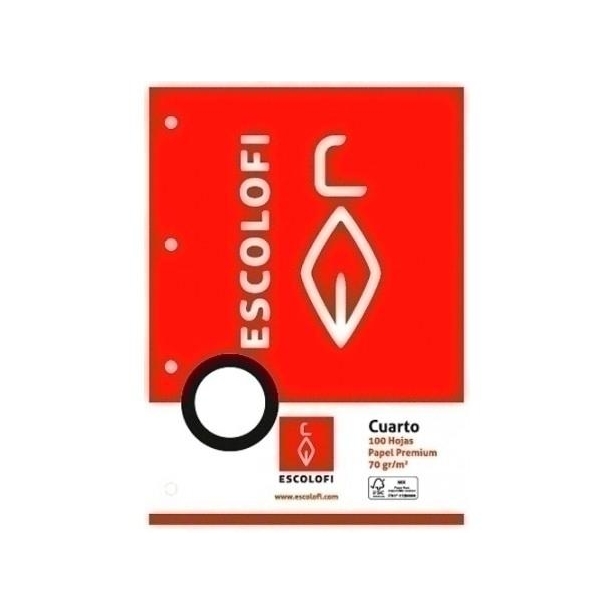 ESCOLOFI RECAMBIO 100 HOJAS CUARTO MONTESSORI 4 TALADROS 70GR PAUTA 5 MARGEN PAPEL BLANCO
