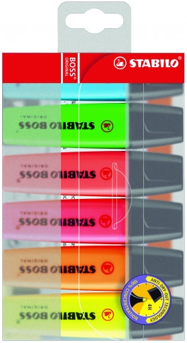 STABILO BOSS Original. Cantidad por paquete: 6 pieza(s), Colores de escritura: Multi, Color del producto: Multicolor. Ancho del paquete: 176 mm, Profundidad del paquete: 18 mm, Altura del paquete: 110 mm