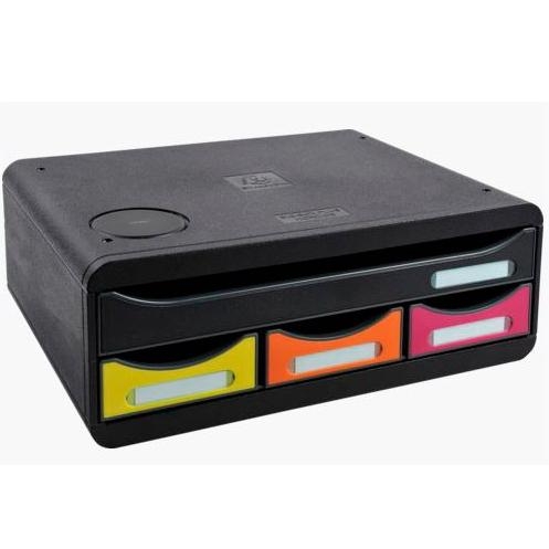 EXACOMPTA MÓDULO SOBREMESA TOOLBOX MINI 4 CAJONES PORTAETIQUETAS INDUC.QI NEGRO/ARLEQUÍN