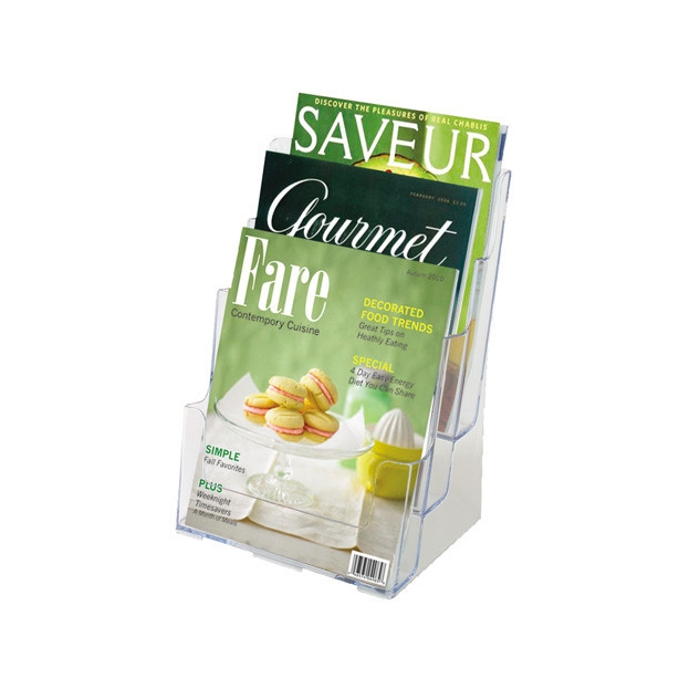 EXPOSITOR SOBREMESA ESCALONADO CON 3 COMPARTIMENTOS TRANSPARENTE A4 DEFLECTO