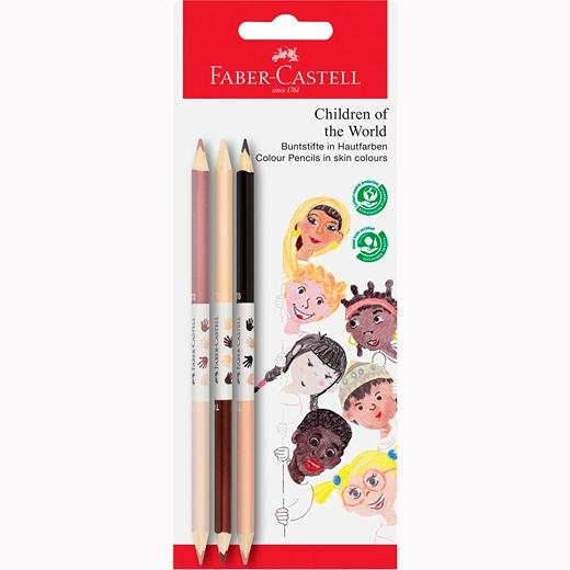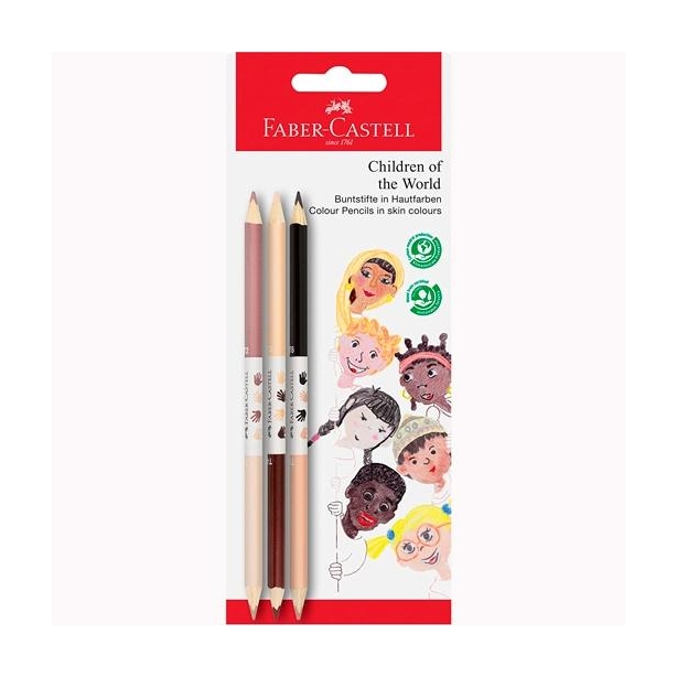 FABER CASTELL BLISTER 3 LÁPICES BICOLOR NIÑOS DEL MUNDO TONOS DE PIEL SURTIDOS