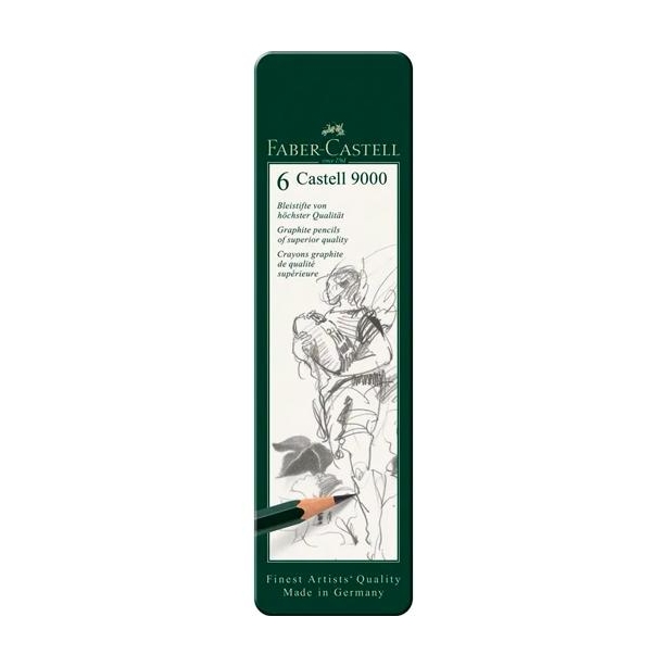 FABER CASTELL LÁPIZ DE GRAFITO 9000 DUREZAS HB, B, 2B, 4B, 6B Y 8B ESTUCHE DE 6 SURTIDOS