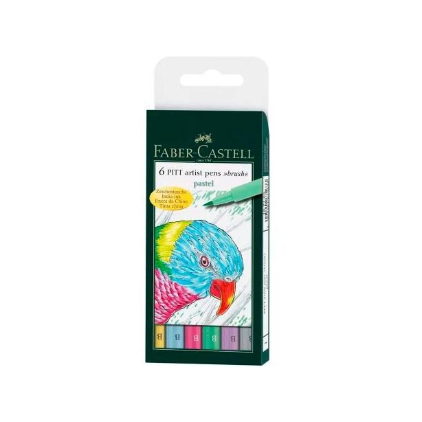 FABER CASTELL ROTULADORES PITT ARTIST PEN BRUSH PUNTA PINCEL ESTUCHE DE 6 C/SURTIDOS PASTEL