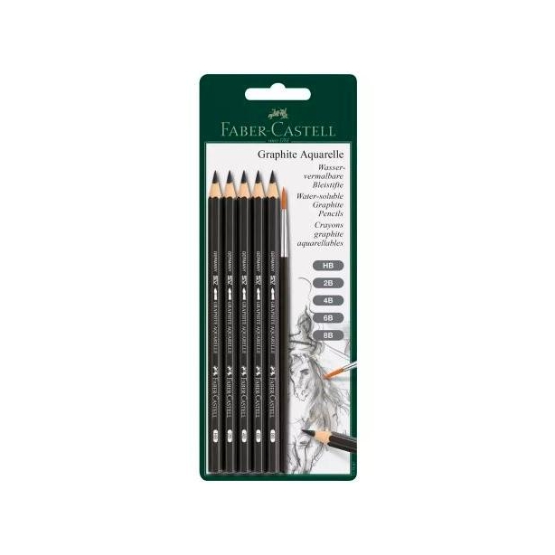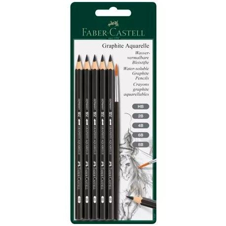 FABER CASTELL SET DE 5 LÁPICES DE GRAFITO ACUARELABLES + PINCEL -BLISTER DE 6 PIEZAS-