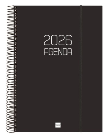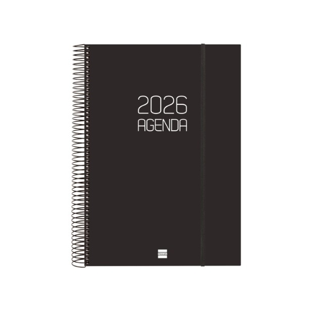 FINOCAM OPAQUE AGENDA DE ESPIRAL - ANUAL 2026 - TAPA LIGERA - CIERRE CON GOMA ELASTICA - COLOR NEGRO