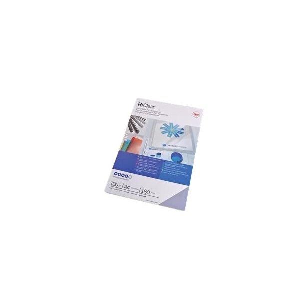 GBC PORTADAS HICLEAR A4 PVC 180 MICRAS CRISTAL TRANSPARENTE -PACK 100U-