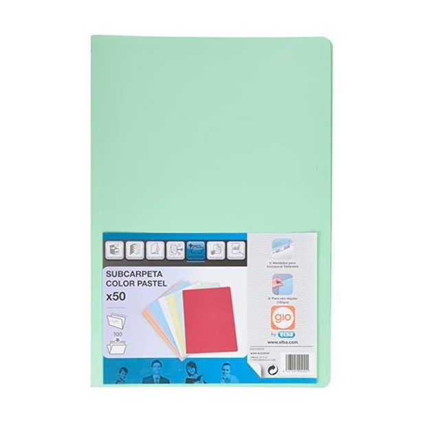 GIO SUBCARPETA SIMPLE CARTULINA FOLIO 180GR VERDE PASTEL -50U-