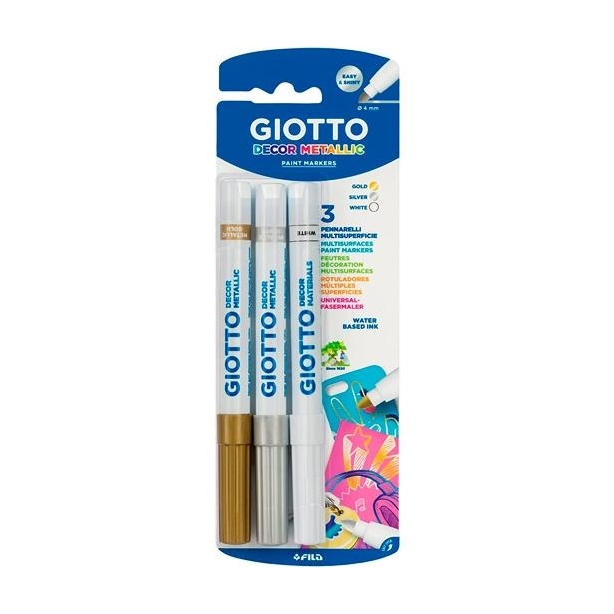 GIOTTO ROTULADOR DECOR METALLIC BLÍSTER 3U ORO/PLATA/BLANCO
