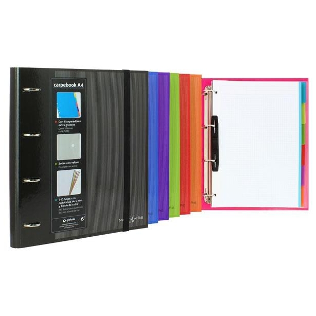 GRAFOPLÁS CARPEBOOK FORRADO 4 SEPARADORES A4 MULTILINE CON RECAMBIO ROJO