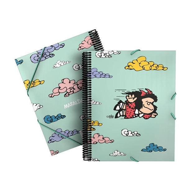 GRAFOPLÁS CARPETA CON FUNDAS MAXIPLÁS MAFALDA VOLADORA 30U A4 ESPIRAL TAPAS PP RÍGIDO OPACO