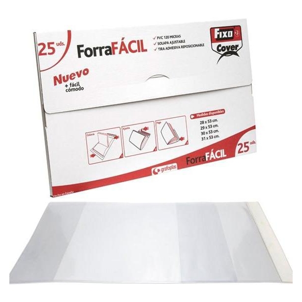 GRAFOPLÁS FORRO LIBROS PVC 120 MICRAS SIN ADHESIVO SOLAPA AJUSTABLE 290X530MM TRANSPARENTE ENVASE DE 25