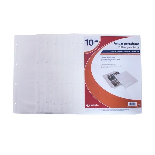 GRAFOPLÁS FUNDAS 4 TALADROS PP EXTRA 320X320MM PARA ÁLBUM FOTOGRAFÍAS TRANSPARENTE -BOLSA 10U-