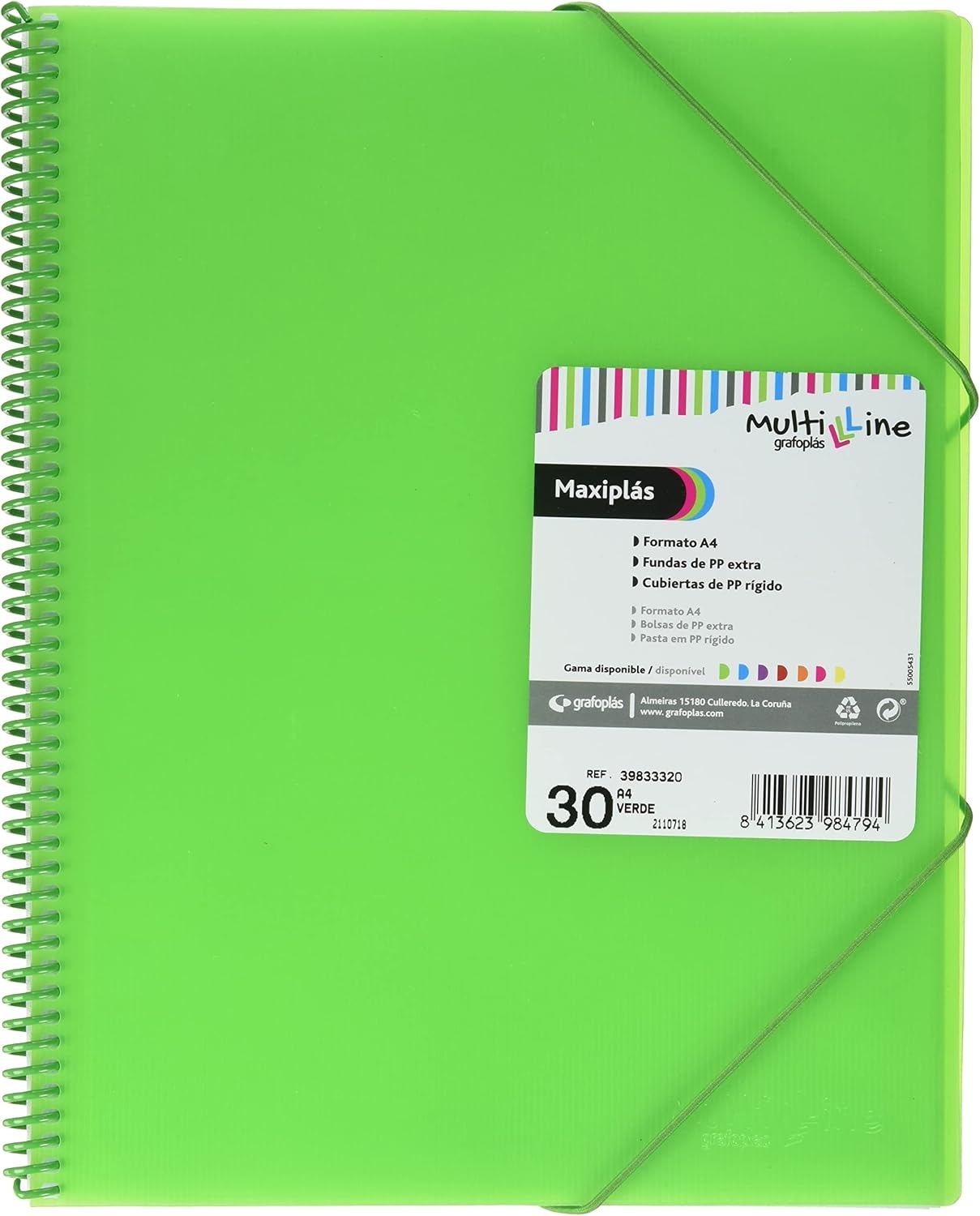 GRAFOPLÁS MAXIPLÁS PP TRANSLÚCIDO RÍGIDO RAYADO VERTICAL A4 30 FUNDAS VERDE MULTILINE