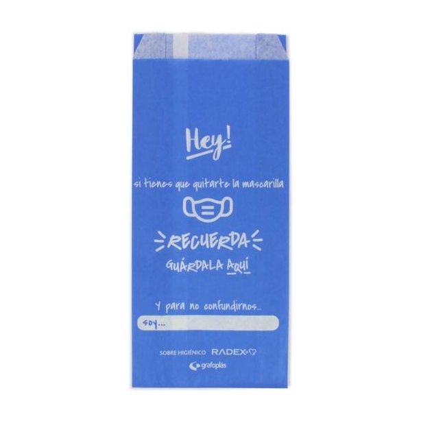 GRAFOPLÁS SOBRE HIGIÉNICO PARA GUARDAR LA MASCARILLA C/FUELLE PAPEL AZUL PACK -10U-
