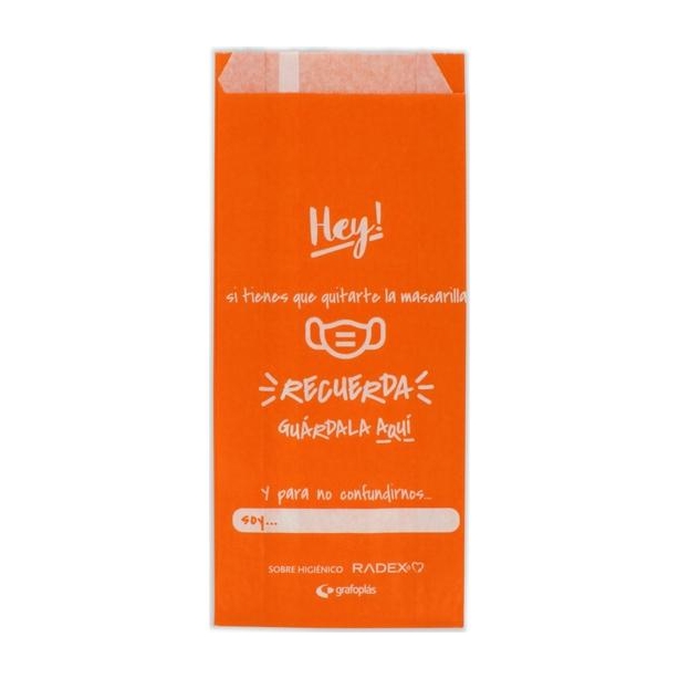 GRAFOPLÁS SOBRE HIGIÉNICO PARA GUARDAR LA MASCARILLA C/FUELLE PAPEL NARANJA PACK -10U-