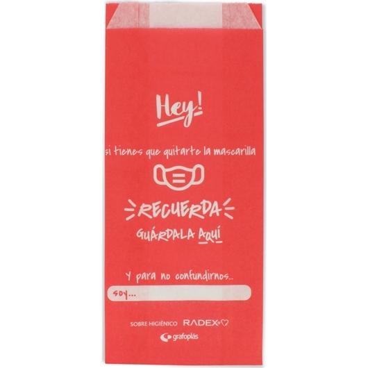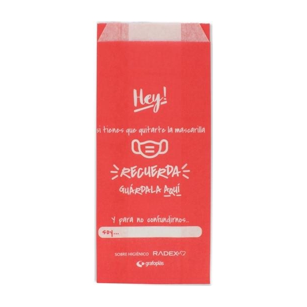 GRAFOPLÁS SOBRE HIGIÉNICO PARA GUARDAR LA MASCARILLA C/FUELLE PAPEL ROJO PACK -10U-