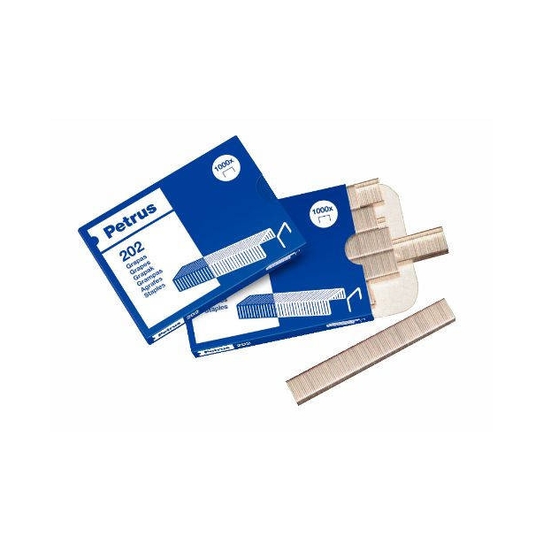 Grapas mod. 202 para Bambina y para Majorette. Úselas con una grapadora Petrus para un rendimiento óptimo. - Tipo de Grapas: 202 - Capacidad máxima de grapado para papel de 80 g/m2 máx.: 1,0 mm/10 hojas