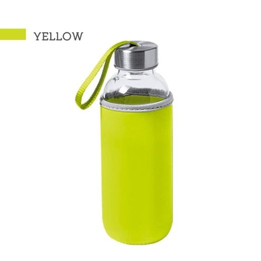 I-DRINK BOTELLA BOROSILICATO ISOTÉRMICA 500ML A/INOXIDABLE CON TAPA AMARILLA EN NEOPRENO