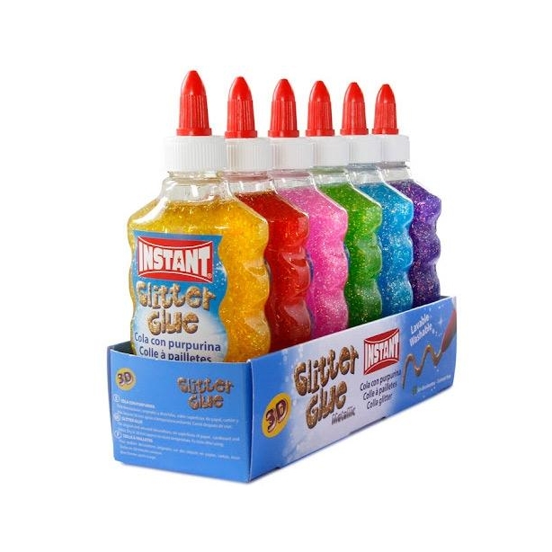 INSTANT COLA LÍQUIDA GLITTER GLUE C/PURPURINA PARA DECORACIÓN BOTELLA 180ML C/SURTIDOS