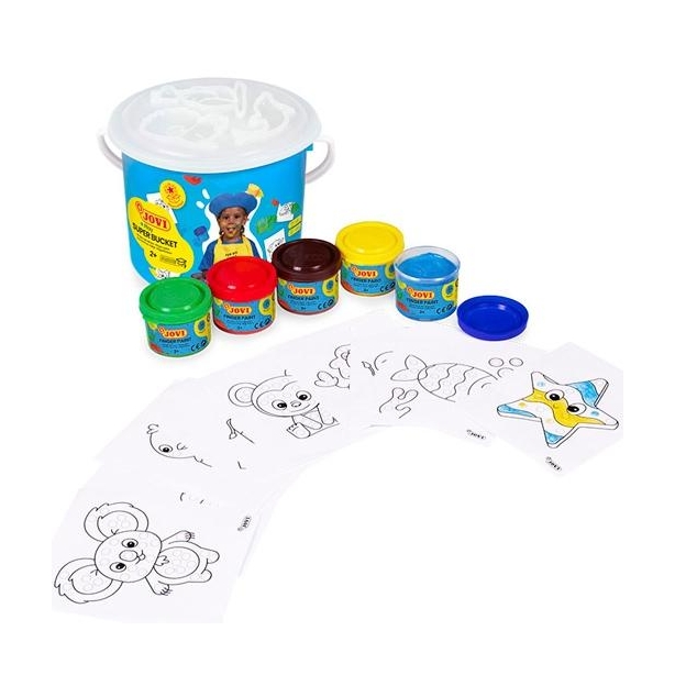 JOVI PINTURA DE DEDOS SUPER BUCKET SET 5 BOTES 35ML + 20 PLANTILLAS C/SURTIDOS 2-3 AÑOS