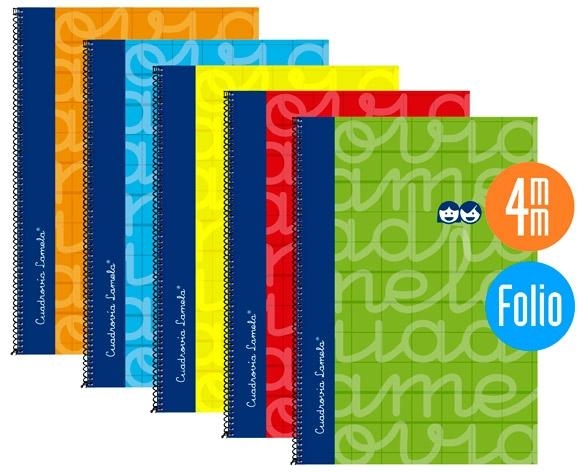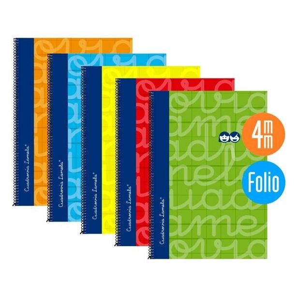 LAMELA CUADERNO ESPIRAL 80 HOJAS FOLIO CUADRÍCULA 4X4 CON MARGEN SURTIDO -PAQUETE 5U-