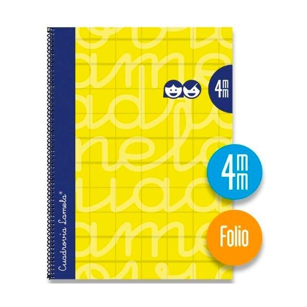 LAMELA CUADERNO ESPIRAL CUBIERTA EXTRADURA 80H FOLIO CUADRÍCULA 4MM C/ MARGEN AMARILLO PACK -5U-