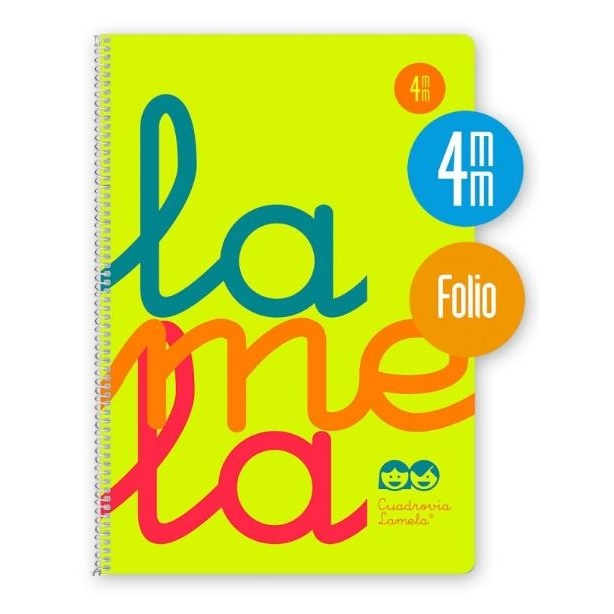 LAMELA CUADERNO ESPIRAL CUBIERTA PP 80H FOLIO CUADRÍCULA 4MM C/ MARGEN AMARILLO PACK -5U-