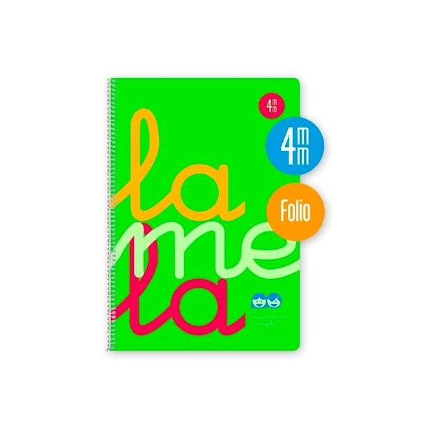 LAMELA CUADERNO ESPIRAL CUBIERTA PP 80H FOLIO CUADRÍCULA 4MM C/ MARGEN VERDE
