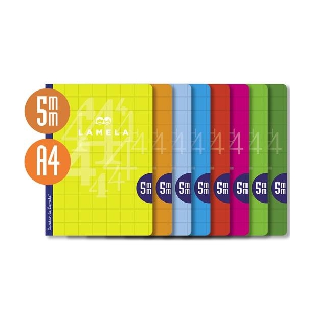 LAMELA LIBRETA GRAPADA 50H A4 90GR CUADRÍCULA 5MM CUBIERTA BÁSICA 5 C/SURTIDOS