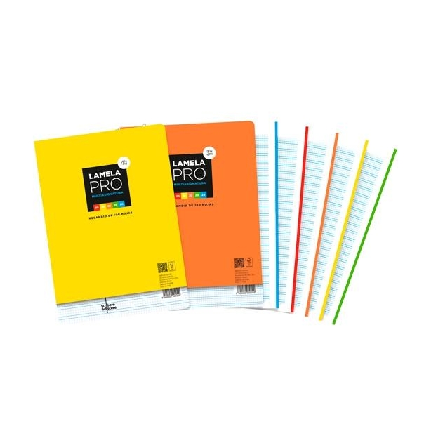 LAMELA RECAMBIO PRO 4 TALADROS 100H A4 90GR CUADROVÍA 4MM MULTIASIGNATURAS 5 COLORES
